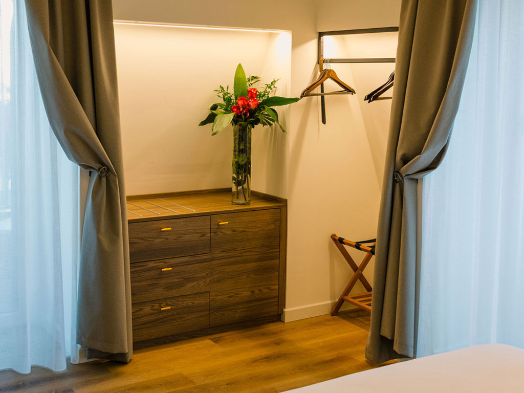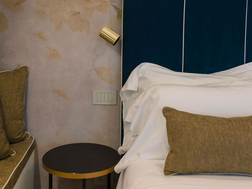 Ampia camera con balcone privato che si affaccia sul mare. Letto king size, tessuti ricercati, relax e romanticismo si fondono in questa camera dal design sobrio e dalla vista straordinaria.