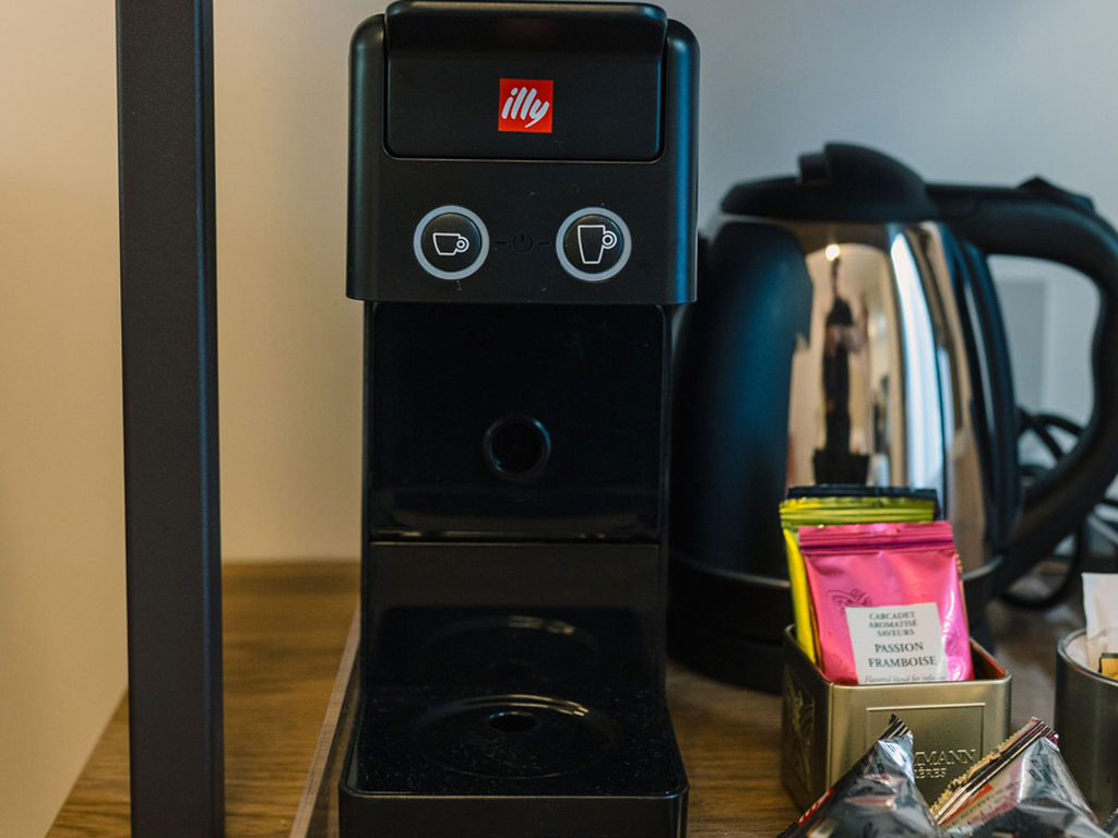 Fornita di macchina del caffè Illy, bollitore.