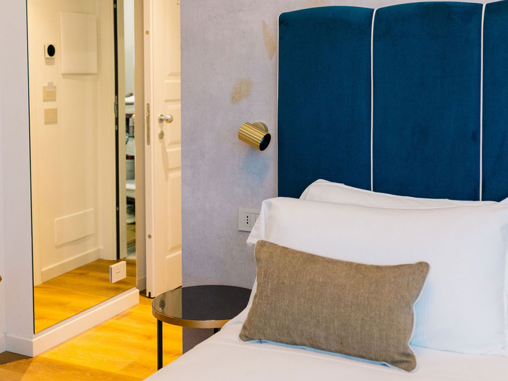 Ampi spazi e luce soffusa caratterizzano questa camera dal design raffinato con letto king size.