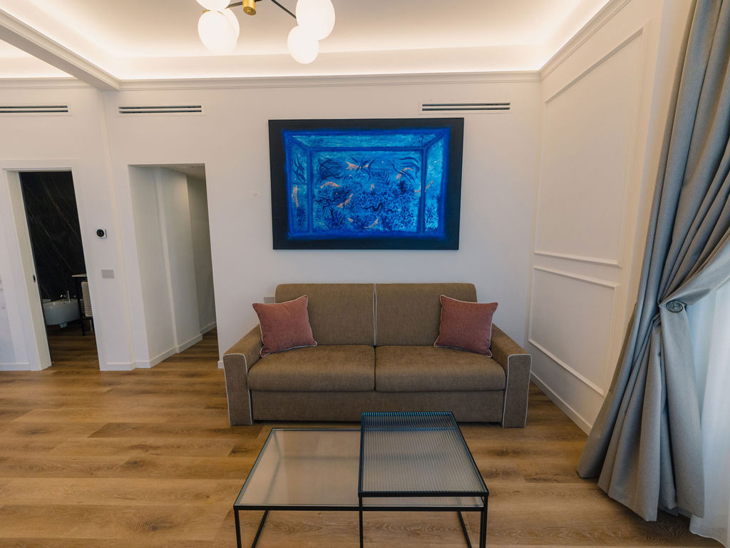 Doppia terrazza panoramica sul mare, zona giorno elegante, ambienti separati, letto king size, fornita del comfort di una macchina del caffè Illy, bollitore e tessuti esclusivi: la Junior Suite Executive è la quintessenza del lusso contemporaneo.